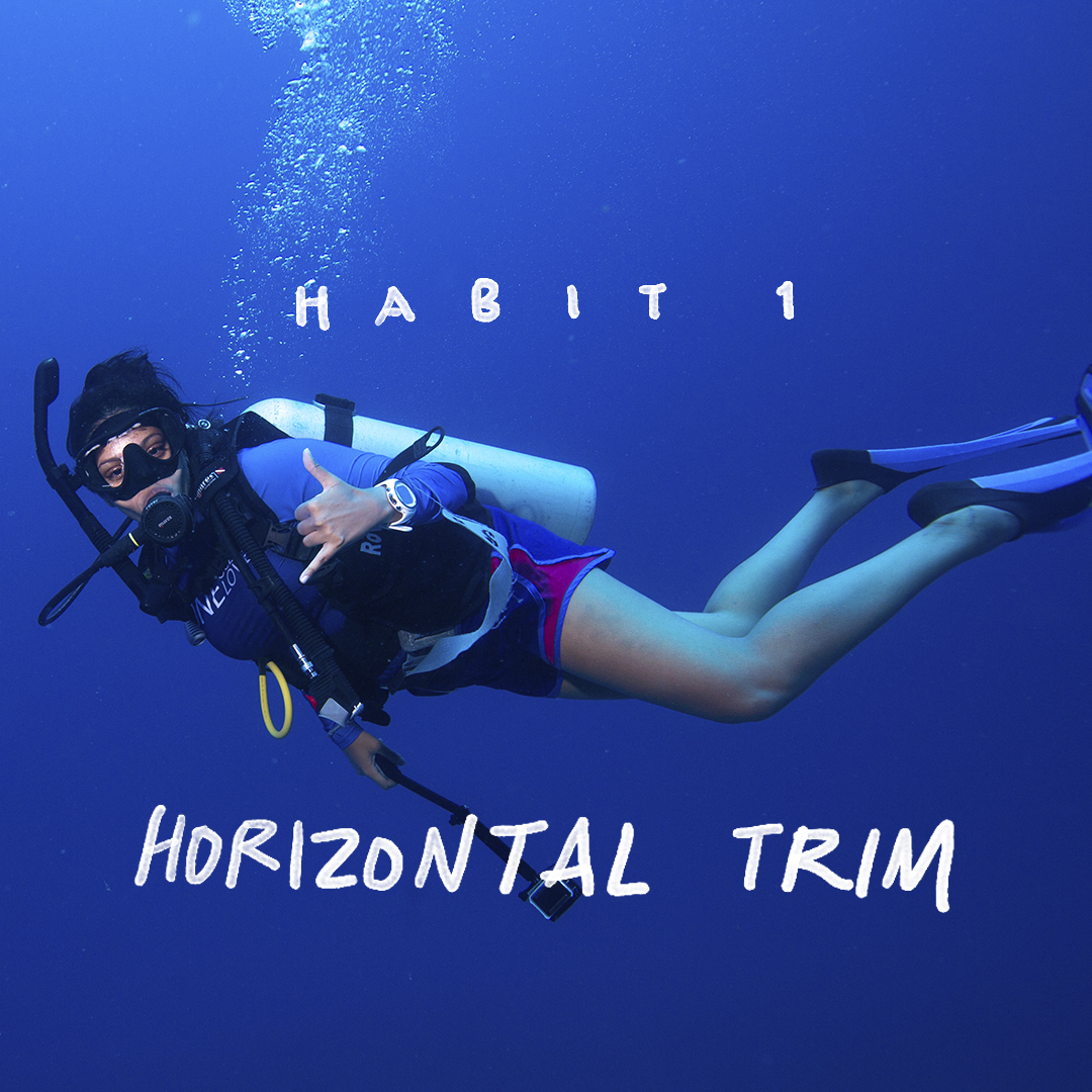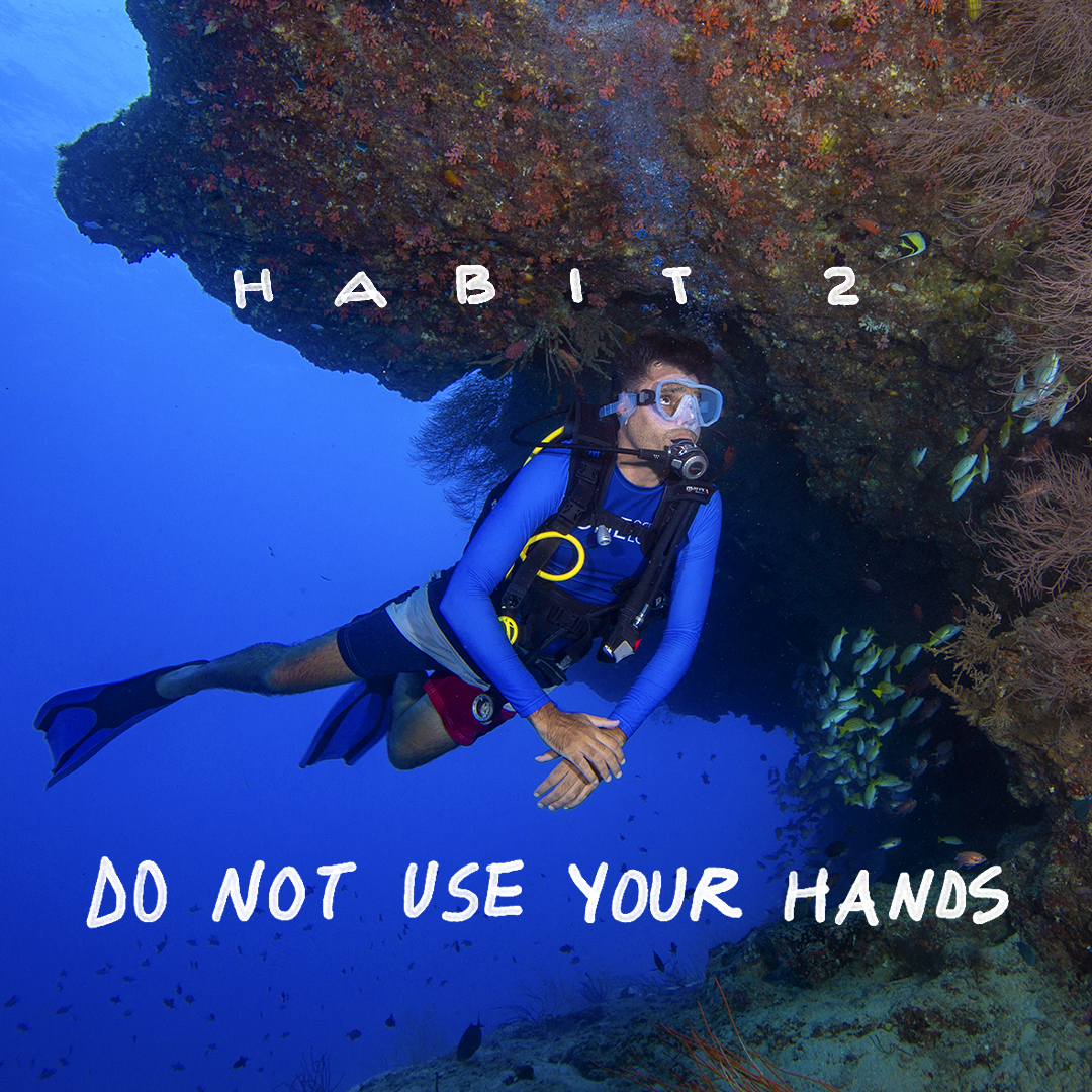 After your horizontal trim you do not use your hands whilst scuba diving (also non negotiable habit), as you will waste the least effort, be at one with the environment, and later have the same hands ready for clicking your photographs!