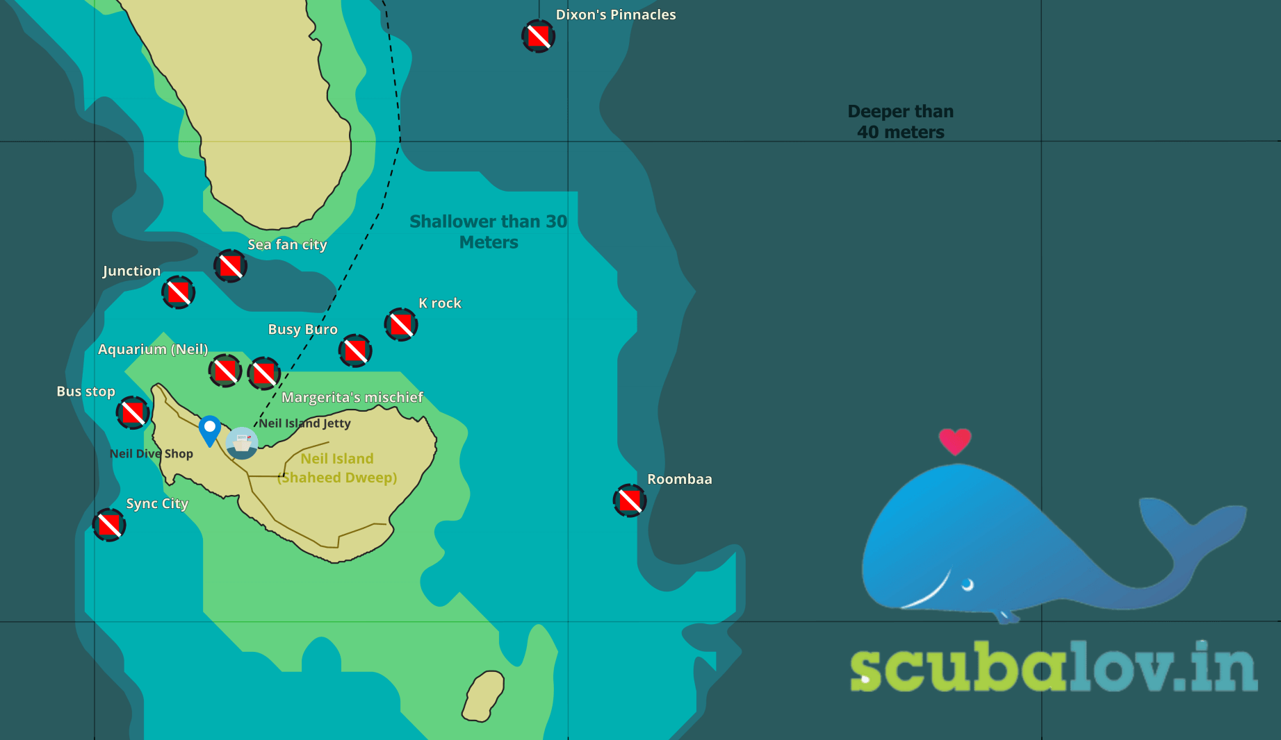 This charming little Island isn’t as commercial as Havelock, thus has a serene and private quality to its beaches. Although, it is underwater that the island really comes to life. The scuba diving scene in Neil is pretty nascent thus making it a wonderland for exploration. With a range of enticing deep sites, shallow aquarium like reefs with resident turtles and sea grass meadows that offer a once in a lifetime chance to brunch with a Dugong, Neil is the perfect place for fun divers as well as first timers. Our full service dive shop on the Island offers you all the facilities that are offered at Havelock from Open Water courses to Try Discover Scuba Diving experiences, only without the rush.
