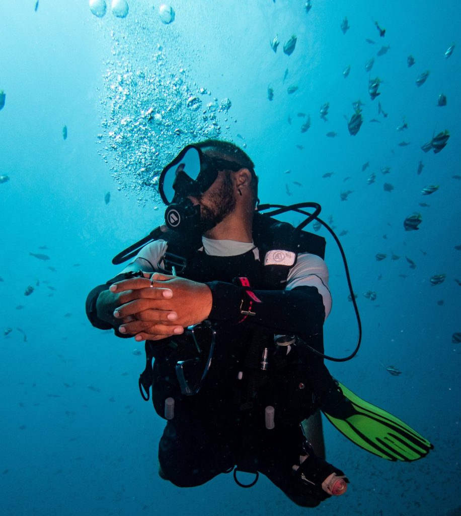 Karan Bhatia is a new addition to the team and has recently become a PADI IDC Staff Instructor (SI). He will be responsible for overseeing dive shop operations and leading Divemaster training on Neil Island. Additionally, Karan will support IDCs conducted by Dhruv and Mark. Before embarking on his journey as a dive professional five years ago, Karan had worked in hotel management and digital marketing. This diverse background has equipped him with exceptional interpersonal skills, allowing him to establish strong relationships with his peers, students and IDC candidates. Karan’s ability to foster trust and create a comfortable atmosphere for everyone is an asset to our team.